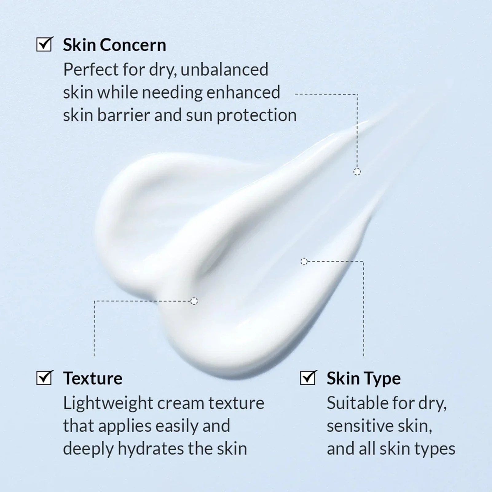 Увлажняющий солнцезащитный крем обеспечивает высокую защиту от UVA- и UVB-лучей и одновременно поддерживает уровень увлажнения кожи. Лёгкая, водянистая текстура равномерно распределяется, быстро впитывается и придаёт коже естественное здоровое сияние без липкости и жирного блеска. Крем помогает поддерживать защитный барьер кожи, смягчает и делает её более гладкой.